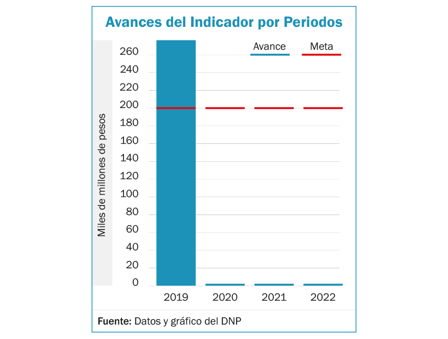Según los resultados arrojados en lo que va del cuatrienio el indicador ha tenido un avance del 33,907 %. Entre enero y diciembre de 2019 tuvo un avance acumulado y de periodo de 271,78. El resultado cualitativo del indicador evidencia, según el DNP, “Se referenciaron los precios de algunos medicamentos anticonceptivos en diferentes droguerías virtuales del país, calculando un margen de comercialización promedio. Finalmente, se realizó el despacho de 130 tratamientos de sofosbuvir a diferentes EPS del régimen contributivo y 1 tratamiento a la gobernación de Bolívar para un paciente del régimen subsidiado de Mutual Ser”. Es preciso aclarar que los valores cuantitativos reportados para el año 2019 corresponden únicamente a la contención del gasto en recobros como consecuencia de la inclusión de tecnologías a la regulación de precios en ese periodo.