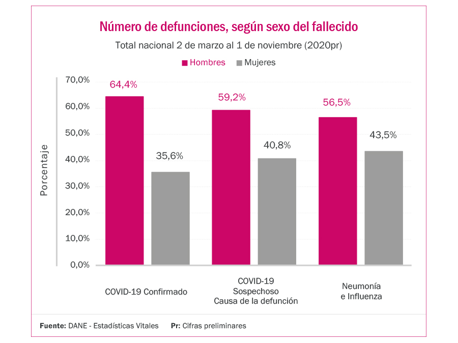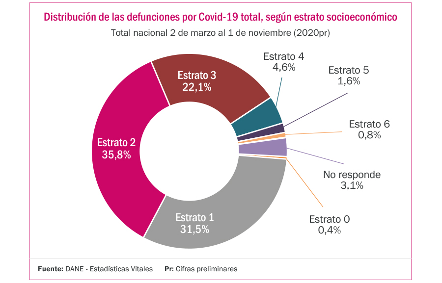 Más allá de este escenario, que sería conveniente aclarar por parte de las autoridades sanitarias, el informe del DANE muestra la caracterización del comportamiento de la mortalidad por Covid durante la pandemia en el país lo que permite observar que la condición igualitaria que se le atribuía a la enfermedad en sus primeros días, cambió radicalmente.