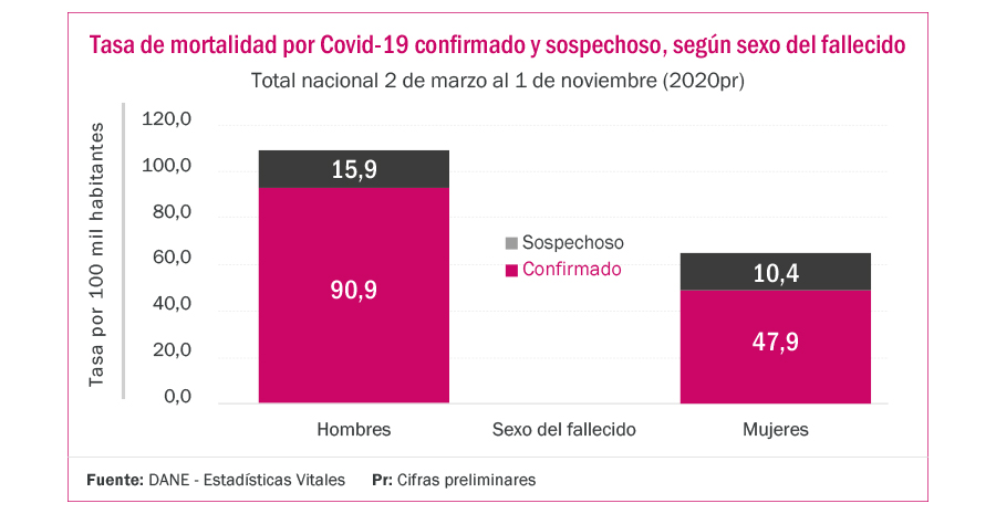 El informe de Defunciones por COVID-19 publicado por el DANE l pasado 23 de noviembre, muestra las cifras oficiales de la mortalidad por Covid-19 entre las semana 10 a 44, lo que equivale al periodo entre el 2 de marzo al 1 de noviembre de 2020.