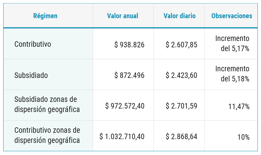 En cuanto a la UPC, a través de la Resolución 2503 de 2020 el Ministerio de salud y protección social estableció que para la vigencia del 2021 los valores por regímenes será: