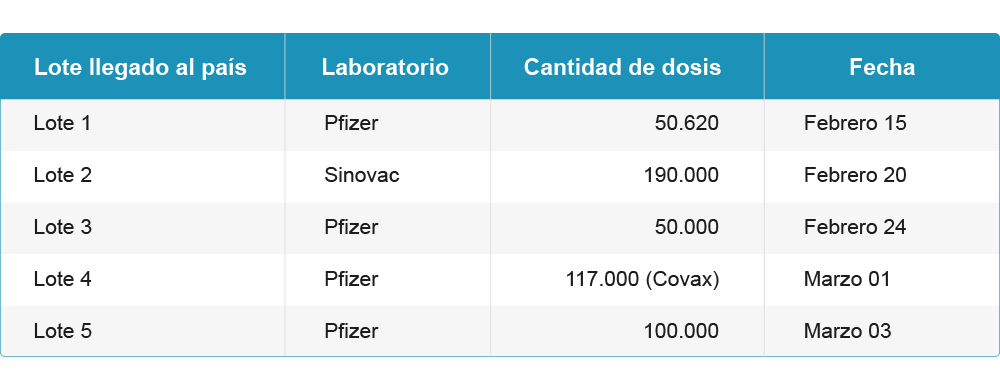 Lo que da un total de 507.620 dosis recibidas frente a una meta para febrero de 850.000 dosis aplicadas. El 7 de marzo con la llegada de lo que es el lote más grande hasta el momento conformado por dos millones de dosis de la vacuna de Sinovac, que curiosamente no estuvo incluida en las primeras negociaciones ni presupuestos, se tendrá un soporte más robusto para adelantar con mayor fortaleza el Plan Nacional de Vacunación.