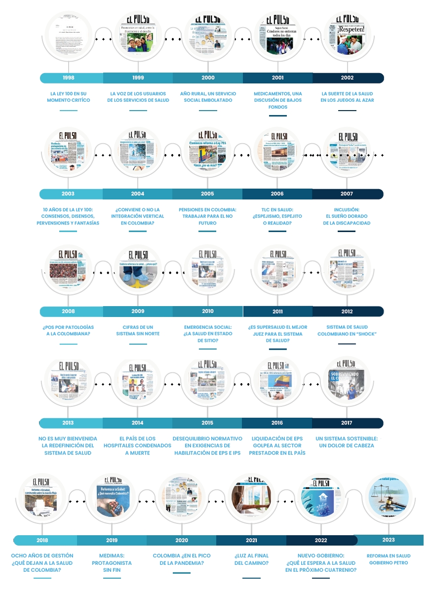 La creación de El Pulso se dio bajo la premisa de realizar, por medio del ejercicio periodístico e investigativo, el seguimiento de la conocida Ley 100 (una figura legal propuesta en 1993 con el fin de crear el “Sistema General de la Seguridad Social Integral”). Fue así como el medio empezó a tomar forma al generar discusiones, preguntas y respuestas dentro del sector, dando a luz su primer ejemplar el 20 de julio de 1998.