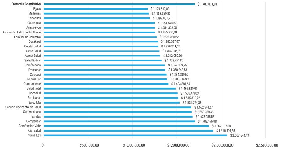 Una gráfica plantea interrogantes sobre por qué algunas EPS reciben el doble en promedio de recursos en comparación con otras. Es importante destacar que dividir el total de recursos entregados a una EPS por el número de afiliados no es suficiente para realizar un análisis adecuado de la distribución equitativa de recursos.