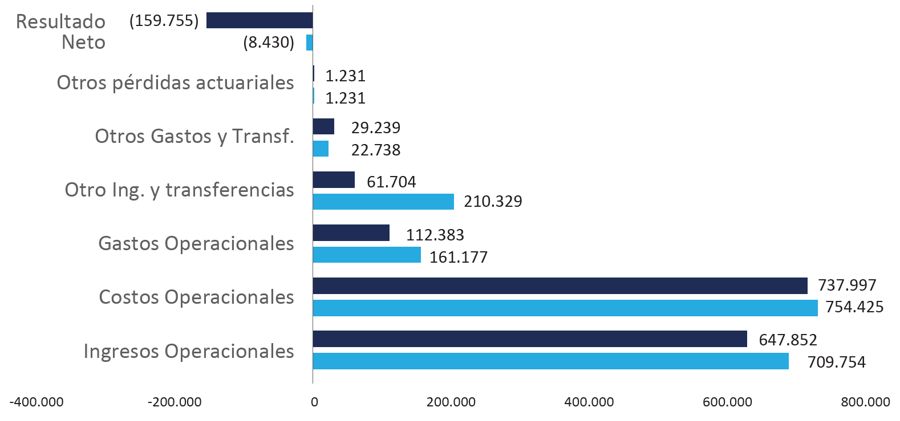 Sin embargo, gracias a un incremento del 240 % en las subvenciones recibidas —que pasaron de $61.704 millones a $210.329 millones—, las pérdidas netas se redujeron drásticamente: de -$159.755 millones en 2023 a -$8.430 millones en 2024.