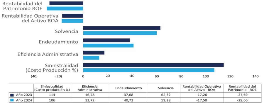 La siniestralidad se redujo del 114 % en 2023 al 106 % en 2024, reflejando mejoras en eficiencia operativa y contención de costos. Esto evidencia un avance en el manejo del riesgo y la optimización de recursos, aunque los costos siguen superando los ingresos.